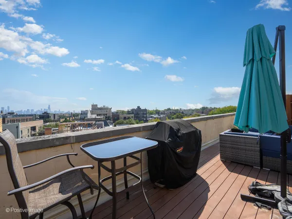 Discover this stunning 2-bedroom, 2-bathroom duplex-up penthouse in the highly coveted 60657 Lofts. This one-of-a-kind home boasts a private rooftop terrace with panoramic views of the Chicago skyline, perfect for relaxing or entertaining. Inside, the open-concept main level features a beautifully renovated kitchen with quartz countertops, white cabinetry, stainless steel appliances, and a spacious island that flows seamlessly into the expansive living room. Enjoy cozy evenings by the gas fireplace, or soak in natural light through sliding glass doors that brighten the entire space. The top floor is dedicated to a full primary suite, complete with two closets, a beautifully updated bathroom, in-unit laundry, and flexible space for an office or den. Step directly onto your private terrace and take in breathtaking city views from your own rooftop escape. Additional conveniences include a heated garage parking space, extra storage, and access to building amenities such as bike storage, a common sundeck, and a party room with kitchenette and bathroom. Ideally located in the heart of Lakeview, just steps from Roscoe Village and Southport Corridor, this home offers unbeatable access to Whole Foods, Target, fitness studios, the EL, and endless dining and shopping options.